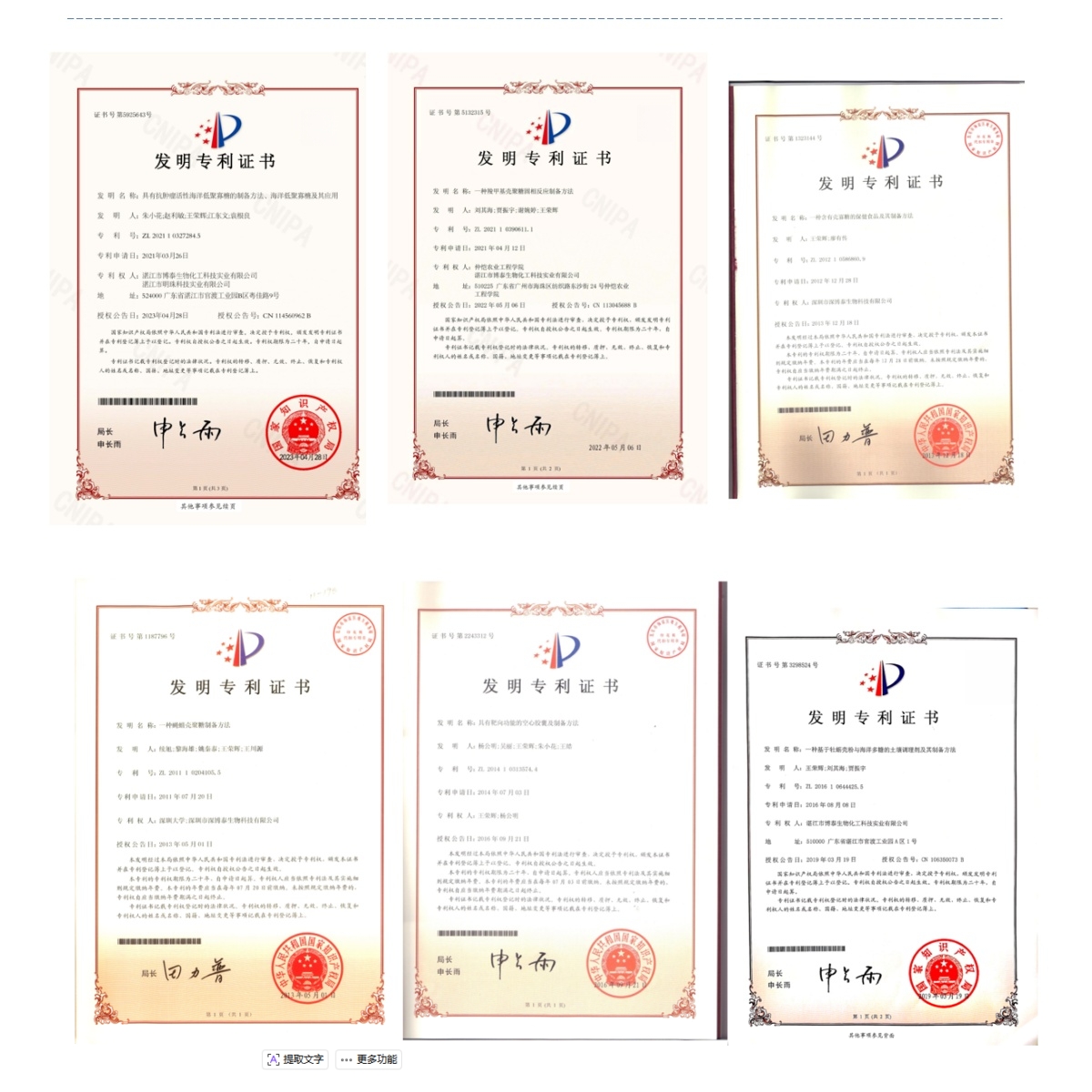 作為國(guó)家高新技術(shù)企業(yè)、廣東省專精特新企業(yè),我們從未停止對(duì)技術(shù)極致的追求。依托 “廣東省海洋生物技術(shù)院士工作站”“廣東省海洋生物綜合利用重點(diǎn)實(shí)驗(yàn)室”“廣東省博士工作站” 三大頂級(jí)科研平臺(tái),我們集結(jié)頂尖智慧,攻堅(jiān)克難,成功突破甲殼素綠色制造關(guān)鍵技術(shù),自主研發(fā)的海洋糖類與多肽多糖超吸收材料,一舉打破國(guó)外技術(shù)壟斷。截至目前,公司已斬獲 17 項(xiàng)授權(quán)發(fā)明專利,主導(dǎo)制定多項(xiàng)團(tuán)體標(biāo)準(zhǔn),用硬核科創(chuàng)實(shí)力,為中國(guó)海洋生物產(chǎn)業(yè)贏得了話語權(quán)。